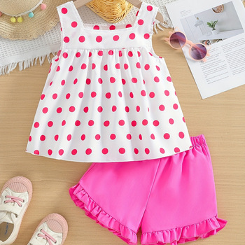 Catpapa Local Warehouse Girls Summer Casual Vest Set Ins Pink Polka Dot Worsted Ruffled Shorts Children's Camisole Tops Sets