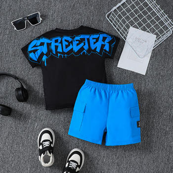 Fashion Brand Toddler Boy Outfits-Casual Cotton Oversized T Shirt and Shorts Set 100% Cotton Printed Summer Kids Clothing