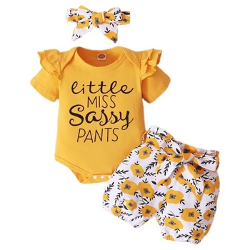 Ít cô gái 'mùa hè trang phục giản dị bông Boutique Quần áo bộ cho bé gái